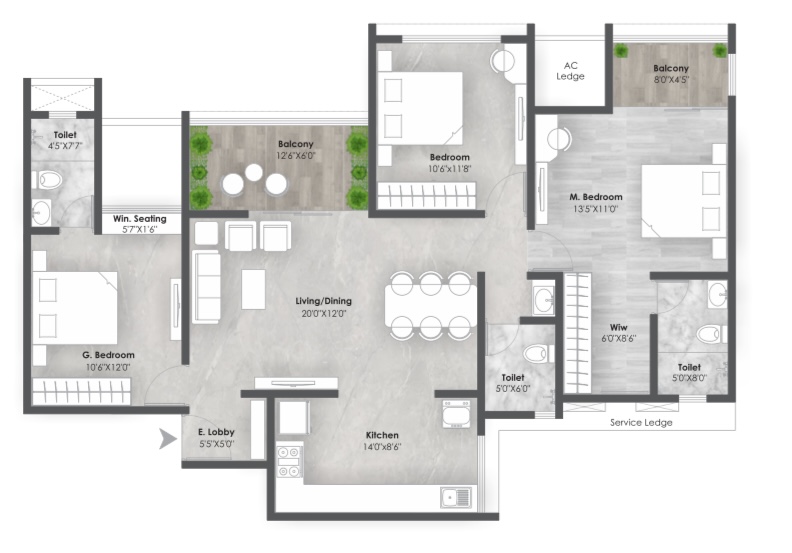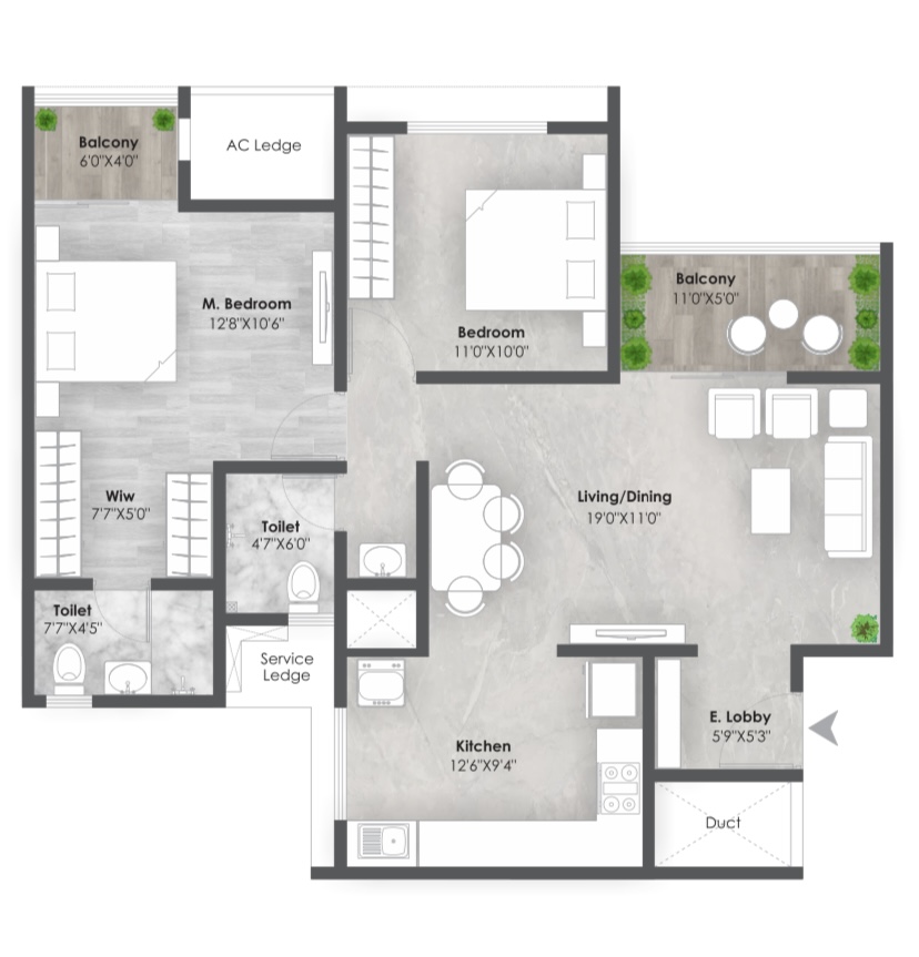 2BHK- 826 SQ.FT & 3BHK-1124 SQ.FT